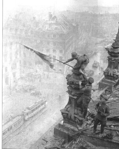 issano sul Reichstag di Berlino la bandiera dell'URSS.