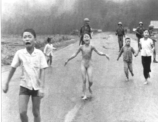 Bambini vietnamiti fuggono dal loro villaggio bombardato col