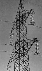ragnatela di cavi e di tralicci, ad una terna e a doppia terna, incombente sul