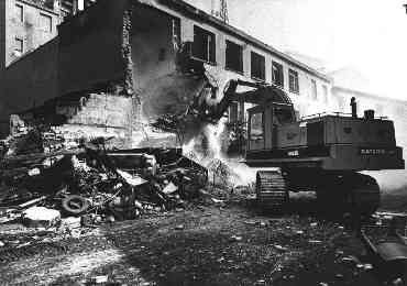 Le ruspe dell'immobiliare Scotti procedono alla demolizione degli stabili del centro sociale.