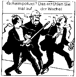 Allgemeine Wachsamkeit bedeutet, sich über die Präsenz der Bullen im klaren zu sein und sich davon nicht abhalten zu lassen, etwas zu tun. Schließlich ist ein wesentlichës Moment der "präventiven Repression", über das allgemeine Bewußtsein der ständigen Bullenpräsenz eine Lähmung zu erzeugen. Eine Steigerung erfährt dies durch polizeiliche Beschäftigungs-Spiele.'Scheinbar sinnlose oder ungezielte Schläge des Repressionsapparates dienen manchmal dazu, Leute einfach nur zu beschäftigen, damit sie keine Zeit finden für andere Dinge. Die lnitiative liegt damit bei den Bullen, sie sind offensiv, und wir rennen den Ereignissen hinterher. Dieser politische Aspekt der Repression ist in anderen Texten vielfach ausführlich behandelt worden.