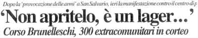 Strana città questa Torino, che ama confrontarsi solo sui temi dell’ordine pubblico. Giovedì scorso, ci avevano pensato i superstiti del comitato spontaneo di San Salvario, con la loro «provocazione virtuale» del porto d’armi per difendersi dagli spacciatori. E, ieri, e giunta la risposta di chi giudica un errore, anzi «un lager», quel centro di prima accoglienza che i110 aprile sarà aperto in corso Brunelleschi. Cosi, nel pomeriggio subalpino, il centro ha visto sfilare, in un clima di grande serenità e senza incidenti, la manifestazione della Rete cittadina Immigrazione e Diritti. Oltre 300 persone, in gran parte extracomunitari, sono partite da piazza Borgo Dora e, raccolte dietro un largo striscione della Rete cittadina, hanno raggiunto la prefettura dopo aver percorso corso Giulio Cesare, corso XI Febbraio e via XX Settembre. Il corteo si e mosso con un ritardo di circa un’ora, a causa del guasto al motore di uno dei furgoni sui quali erano montati gli impianti per diffondere musica e slogan. «È possibile che Torino assista impassibile all’apertura di quell’obbrobrio, un campo di detenzione per immigrati irregolari? In corso Brunelleschi si prepara un vero e proprio lager, una ferita alla città, alla sua tradizione di civiltà. La stessa Torino che, negli Anni 60, era riuscita ad accogliere migliaia di immigrati meridionali...», hanno spiegato gli organizzatori della manifestazione. Poi, ricevuti in prefettura, i rappresentanti della Rete cittadina Immigrazione e Diritti hanno consegnato un documento nel quale sono sottolineati gli aspetti più salienti della questione immigrazione e dove si mette in rilievo come « la decisione del governo di allargare la sanatoria a tutti coloro che ne abbiamo presentato richiesta entro il 15 dicembre scorso, sia un atto apprezzabile, ma ancora insufficiente».«perché spiegano gli esponenti della Rete sarà mantenuto il limite, inaccettabile per noi, del rispetto dei requisiti richiesti: lavoro regolare, abitazione, ingresso in Italia anteriore al 27 marzo ’98, nessun precedente penale. Per 1’immigrato, che non rispetti anche uno solo di questi punti, scatterà 1’espulsione». Ma sorgerà davvero un «lager» in corso Brunelleschi? Il vicesindaco Domenico Carpanini spegne i toni della polemica.«Nessuno vuole davvero esaltare quella struttura dice. È però, una dolorosa necessità se si vuole realizzare una rigorosa attività di controllo e di espulsione di quegli immigrati clandestini che commettono illeciti e che sono entrati nelle strutture della criminalità cittadina. Nessuno, comunque, nella nostra città vuole persecuzioni o lager...».